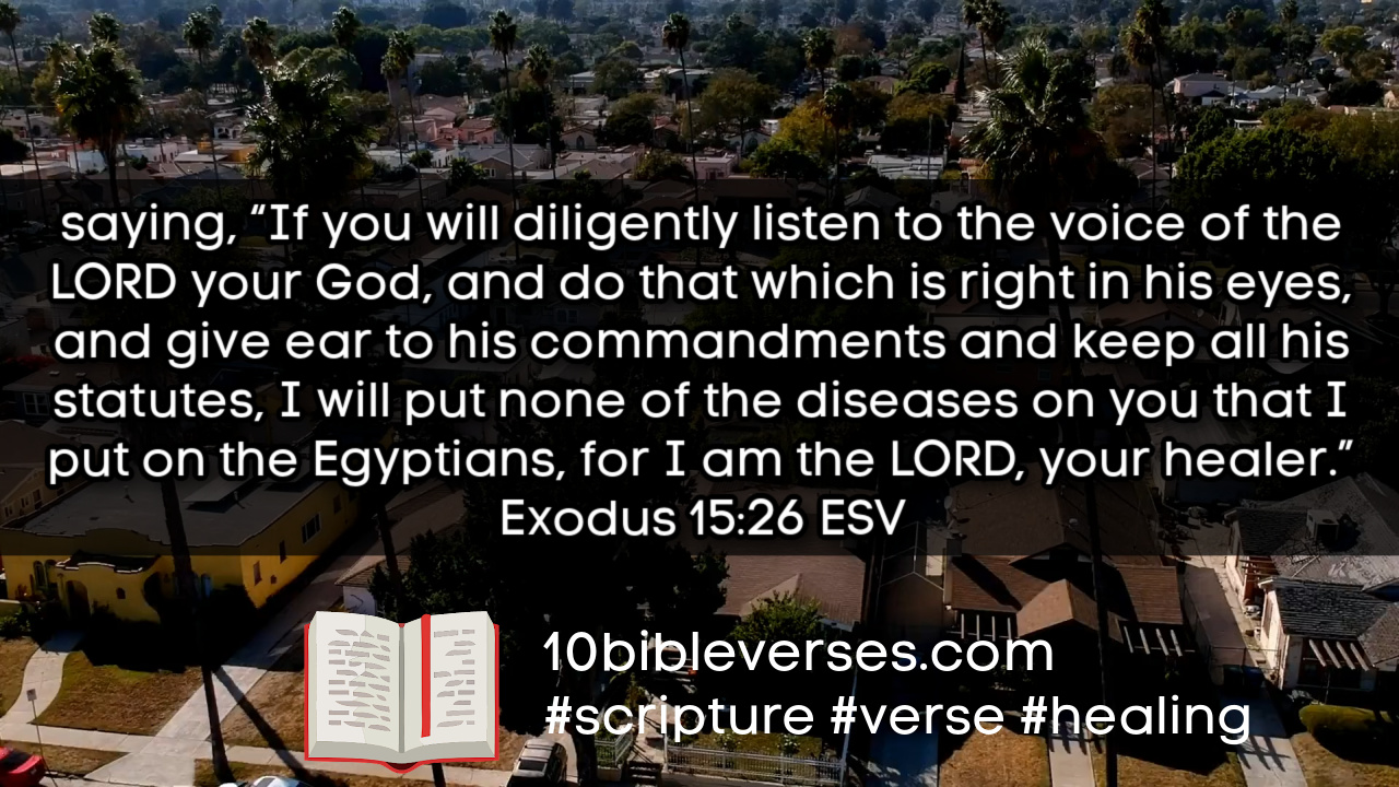 26 saying, βIf you will diligently listen to the voice of the LORD your God, and do that which is right in his eyes, and give ear to his commandments and keep all his statutes, I will put none of the diseases on you that I put on the Egyptians, for I am the LORD, your healer.β